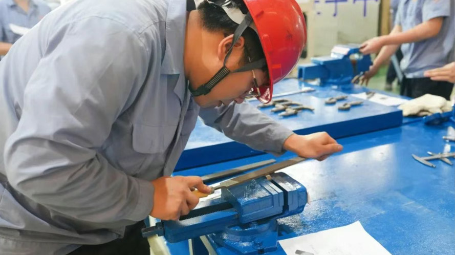 隨著裁判一聲令下,賽場瞬間進(jìn)入 “緊張模式”。選手們迅速拿起工具,有的手持銼刀專注打磨工件,金屬碎屑紛飛中,工件表面逐漸平整如鏡;有的緊盯測量刻度,精準(zhǔn)把控每一處尺寸,力求誤差控制在毫米級。