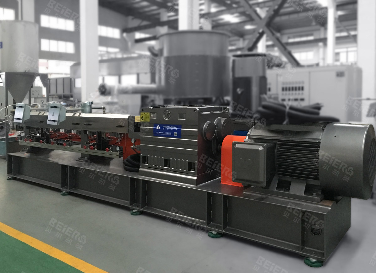 積木式同向平行雙螺桿造粒機擠出機:用于各類塑料的造粒,分散性好、具有產(chǎn)量大、塑化好、能耗低,采用漸開線齒輪傳動,具有噪音低、運轉(zhuǎn)平穩(wěn)、承載力大、壽命長等特點。