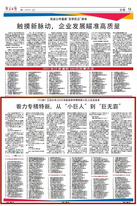 近日,江蘇省經(jīng)信委公布了173家省專精特新小巨人企業(yè)名單。其中,專精特新產(chǎn)品70個(gè),科技小巨人企業(yè)60家,隱形冠軍企業(yè)27家,隱形小巨人企業(yè)16家。
